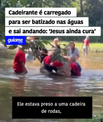 Um vídeo emocionante tem repercutido nas redes sociais e tocado milhares de corações: um cadeirante, levado nos braços até um rio para ser batizado, saiu andando milagrosamente das águas.