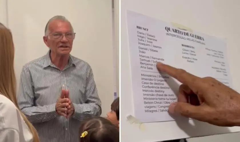 Ao entrar no cômodo, o pastor revelou um papel colado na porta com os nomes de seus familiares, explicando que intercede diariamente por cada um deles.